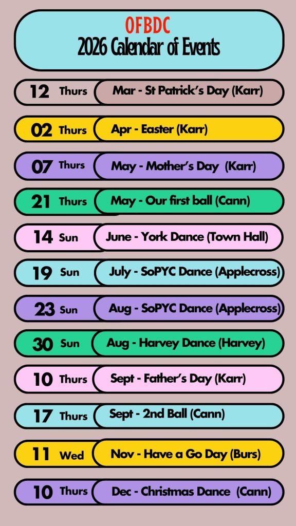 Our social dances start at 12:05 pm and finish at 3:00 pm.