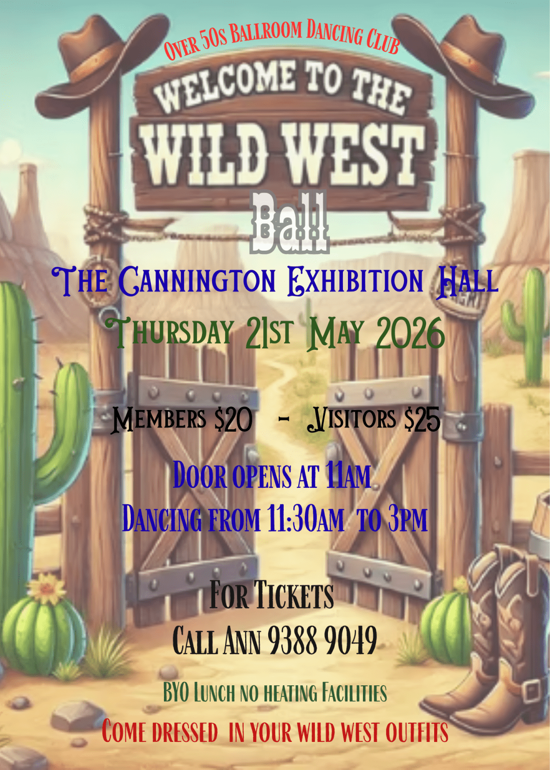 Over 50s is at Cannington this week for lesson 2 of Rumba D’Amour starting at 11:05 am and social dancing from 12:05 to 3:00 pm.