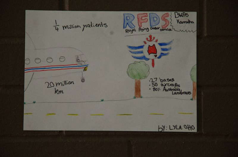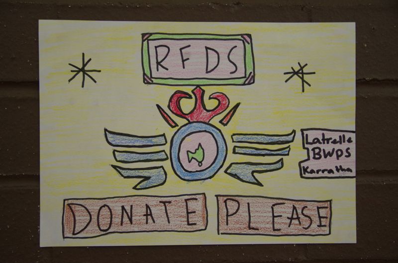 Drawings from young children were posted on the wall encouraging OFBDC members to donate towards the very worthy cause of the Royal Flying Doctor Service.